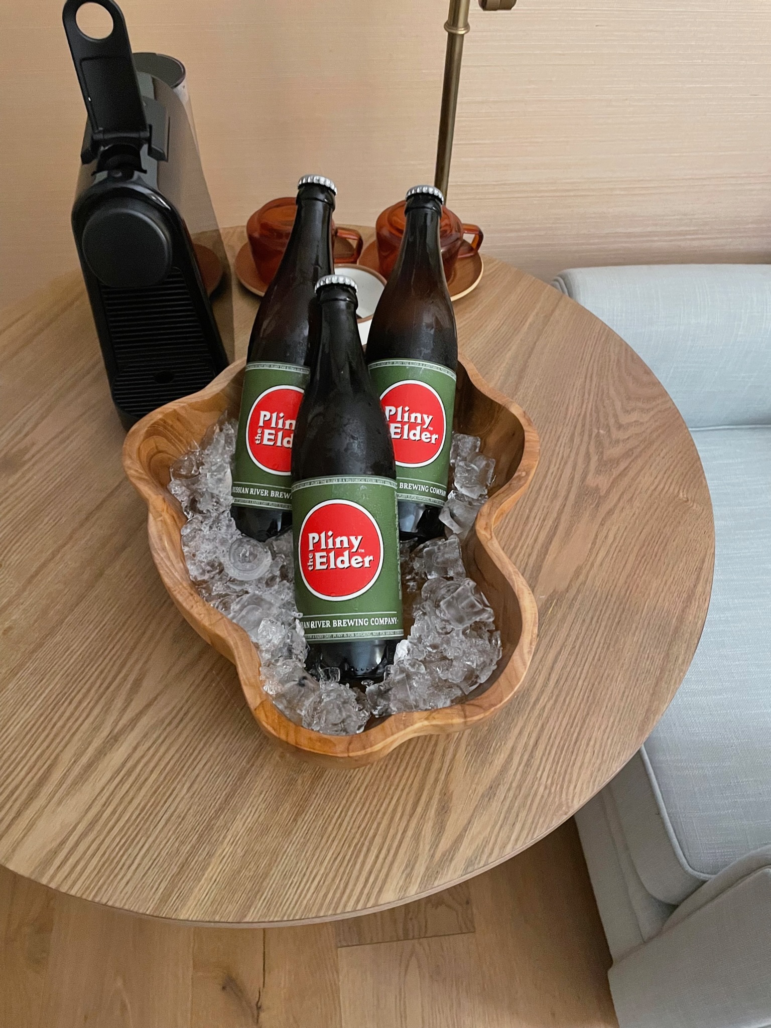 We arrived fairly early, and I asked George for some place we could go for lunch in town, he made a great recommendation, so we parked and took an Uber in with Tori and Paul and had a great lunch at a local brew pub. Upon returning, we were met with welcome drinks (fully stocked bar, and some great wine selections), we checked in and off we went to relax before continuing the day. While we were checking in, I had asked George if there was any place I could get Pliny the Elder, the beer I was chasing, so far unsuccessfully, as I really just wanted to try it to compare to Heady Topper (my favorite VT Dipa). He said he’d check around, that he had seen it and he’d let me know.